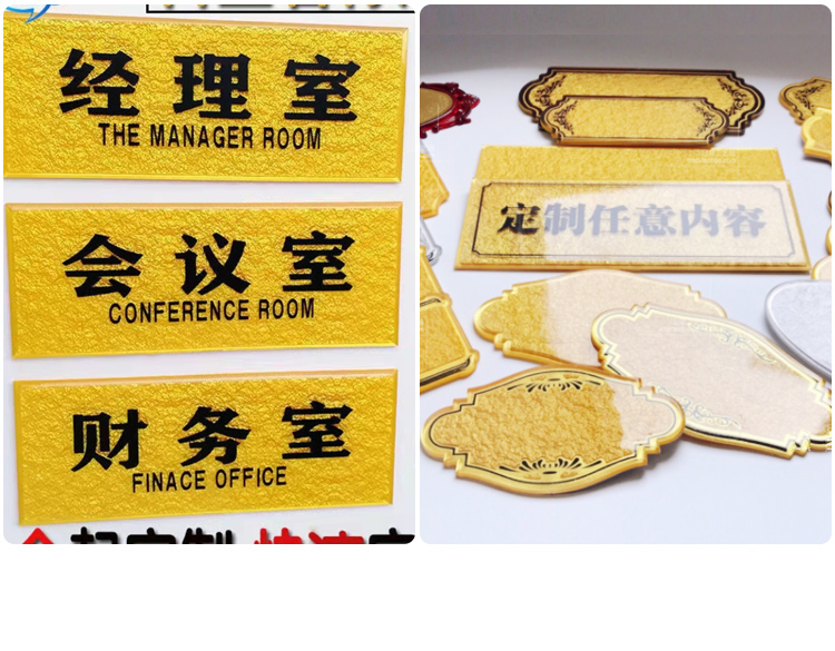 海斯迪克 门牌定制办公科室酒店房号牌 HKL-247 亚克力 15*8cm实厚1.3mm 镜面金 1个