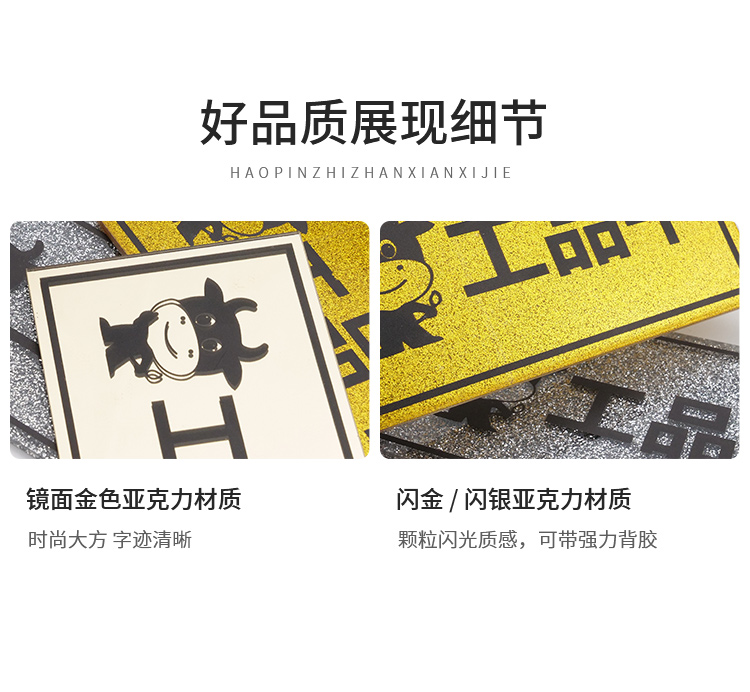 海斯迪克 门牌定制办公科室酒店房号牌 HKL-247 亚克力 15*8cm实厚2.5mm 闪金 1个