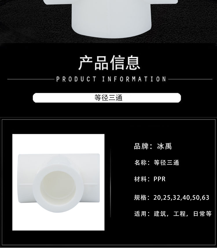 冰禹 等径三通 BYjj-06 ppr 白色 热熔 2.5MPa 40mm 1个
