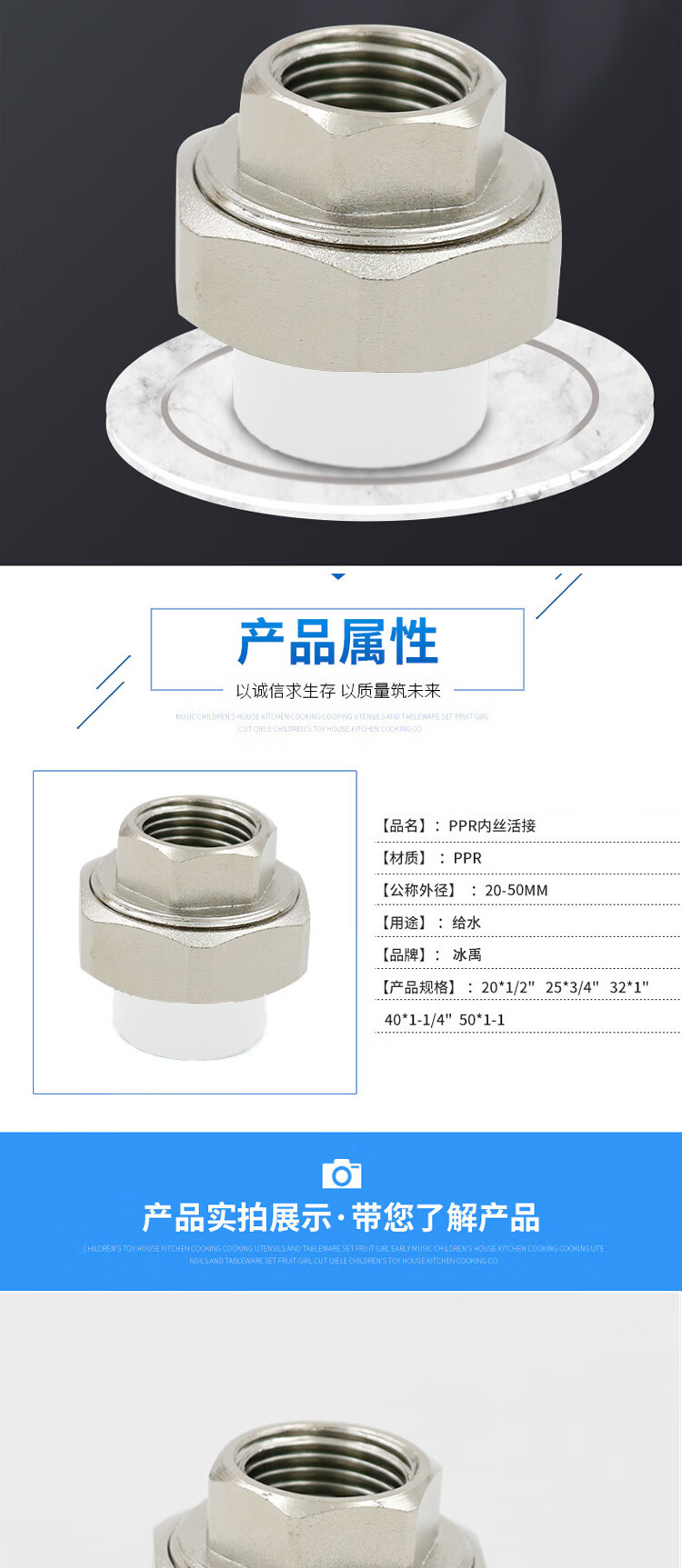 冰禹 PPR管件内丝活接 BYlj-283 白色 40*1-1/4” 1个