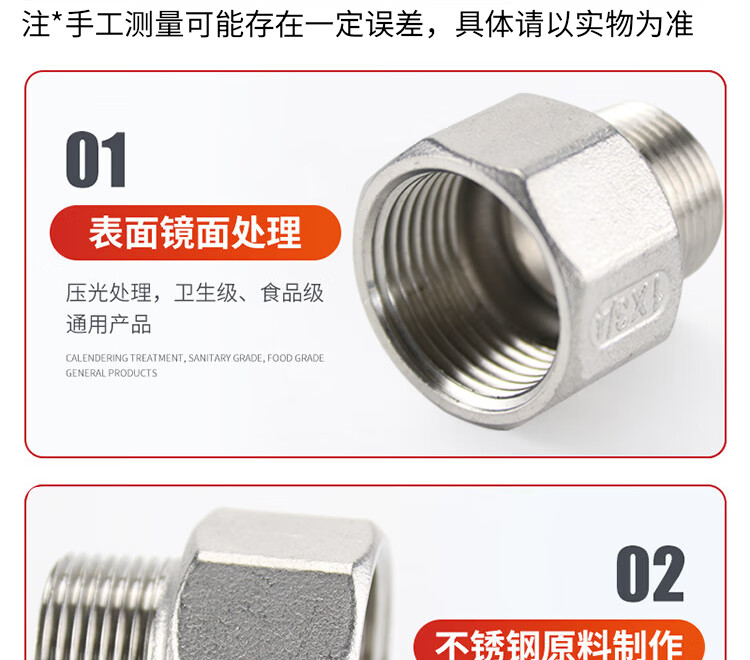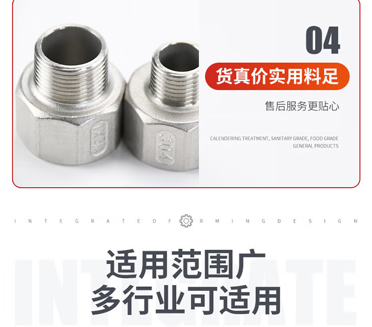 冰禹 六角内外丝变径接头 BYQ-547 304不锈钢 螺纹 1/2×3/8 1个