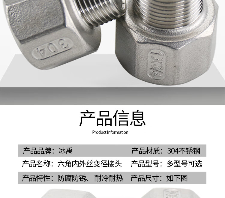 冰禹 六角内外丝变径接头 BYQ-547 304不锈钢 螺纹 1×3/4 1个