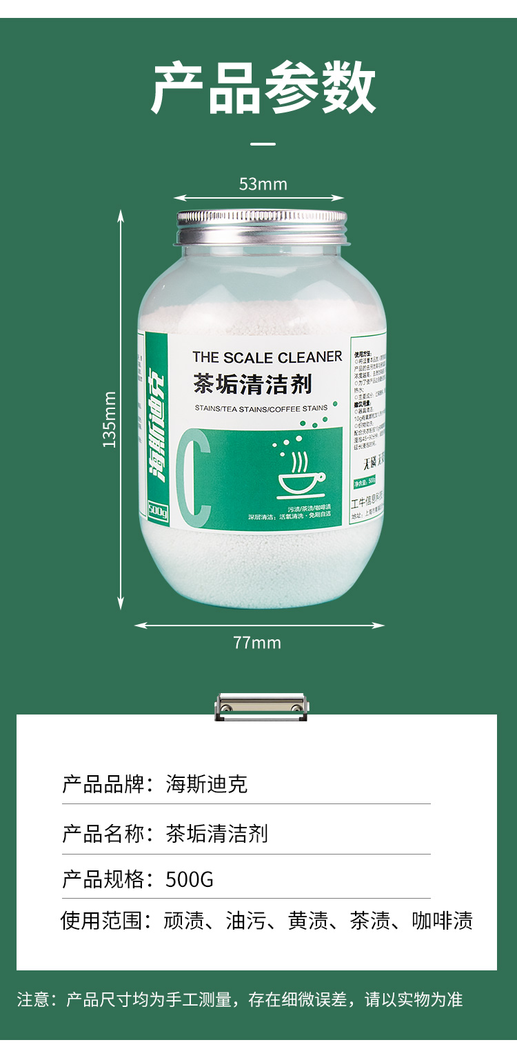 海斯迪克 茶垢清洗剂 HZL-26 茶垢粉 500g 1瓶