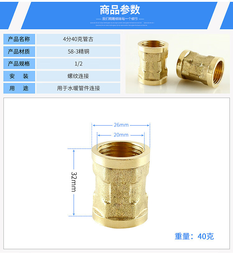 海斯迪克 铜内牙直接 HKDP-118 58-3精铜 1/2 30g 5个 1包