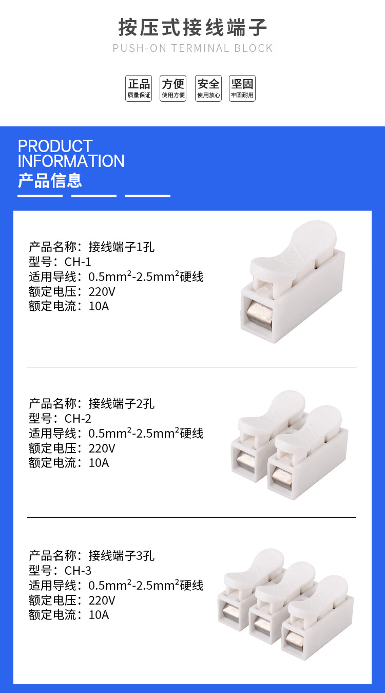 海斯迪克 按压式接线端子 HKHE-096 CH3三进三出 100只 1包