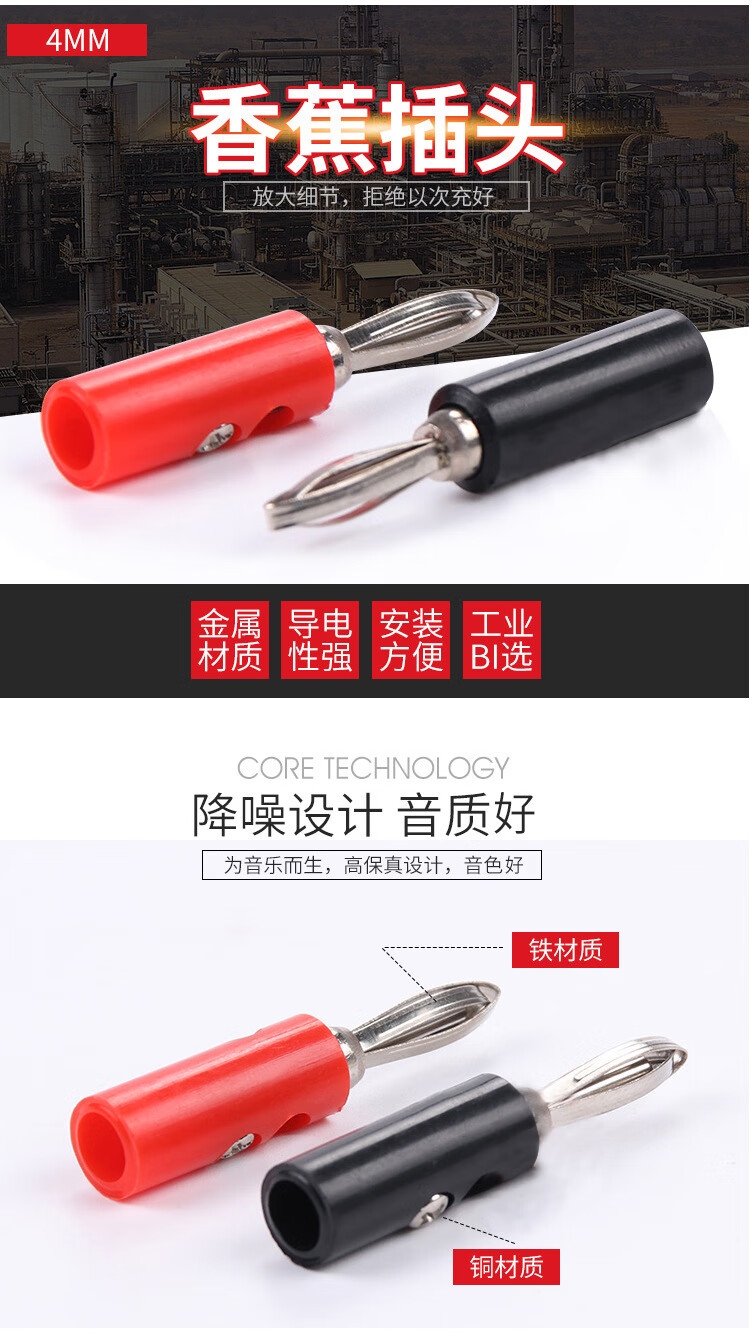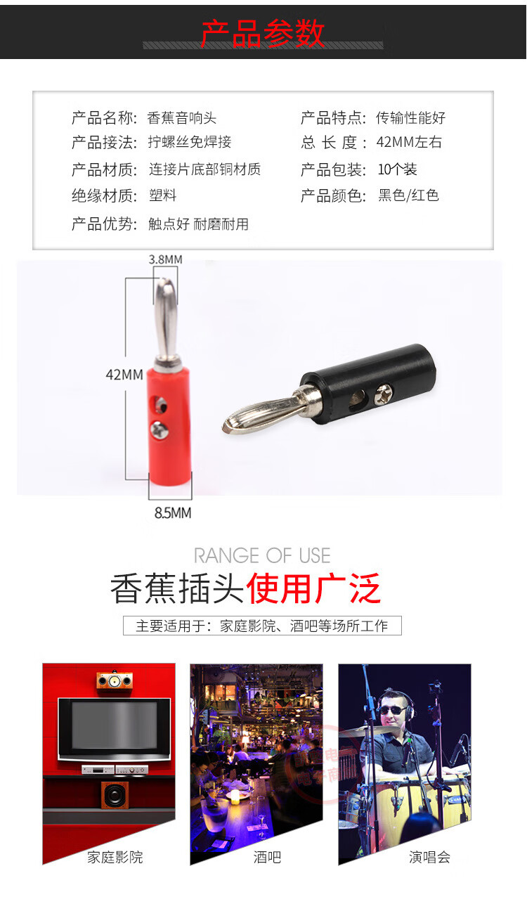 海斯迪克 香蕉头插头 HKT-104 红色 10个 1包