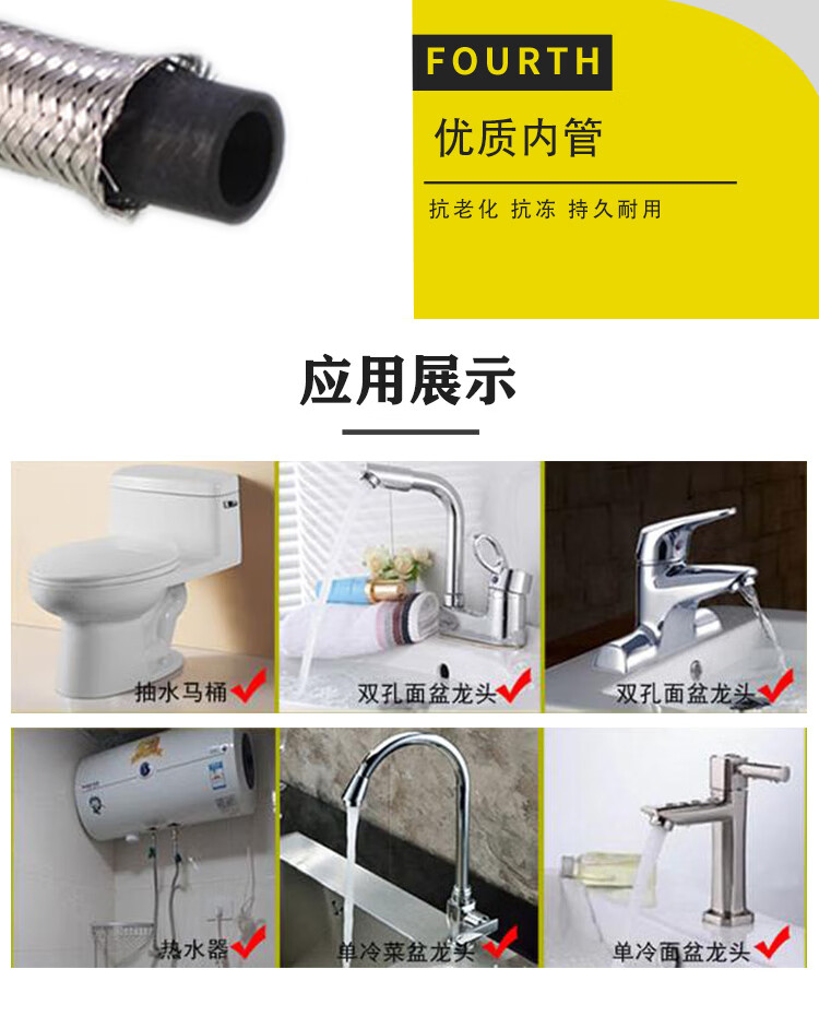 冰禹 编织管 BYzx-104 304不锈钢 螺纹 冷水阀 4分 120cm 1件