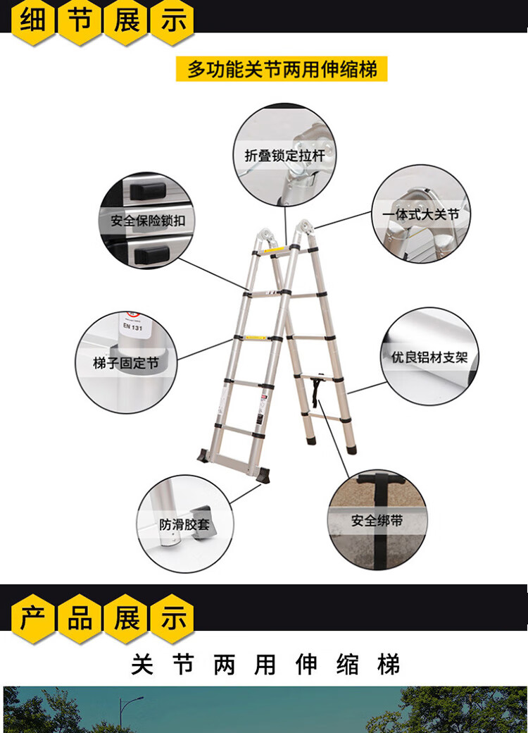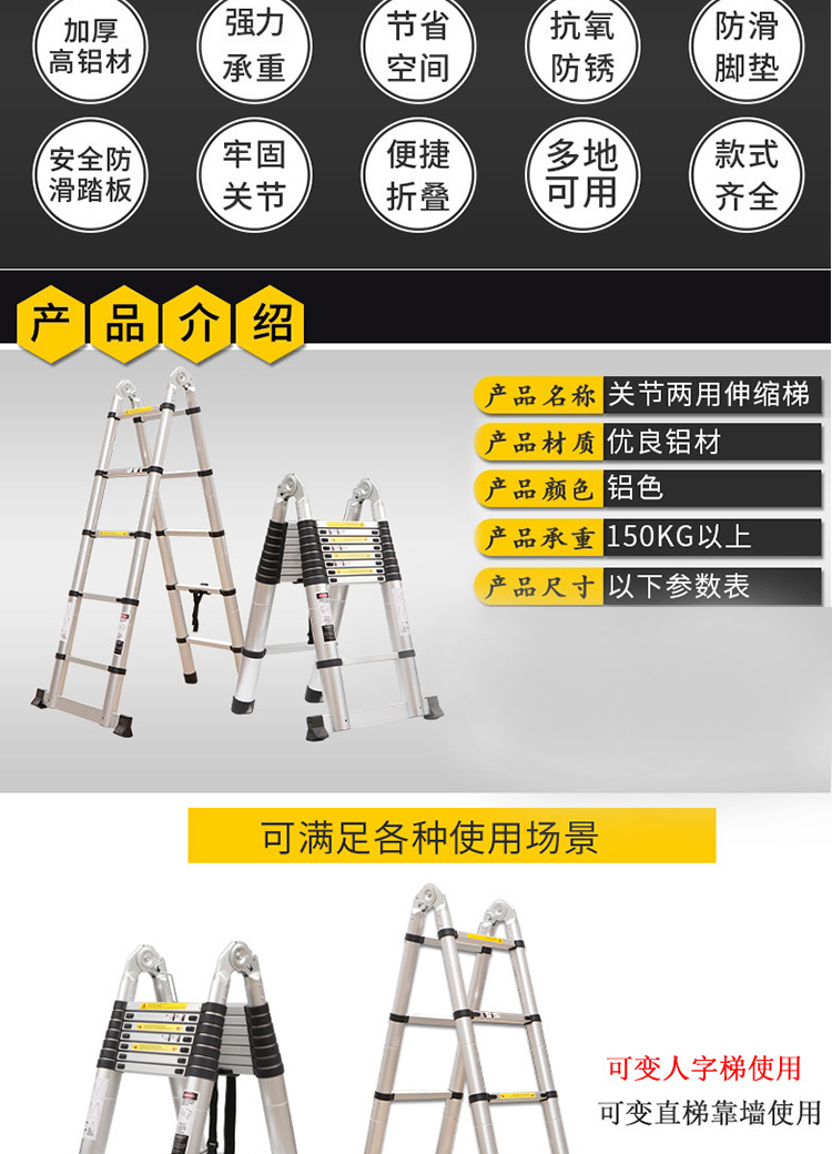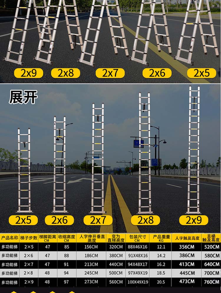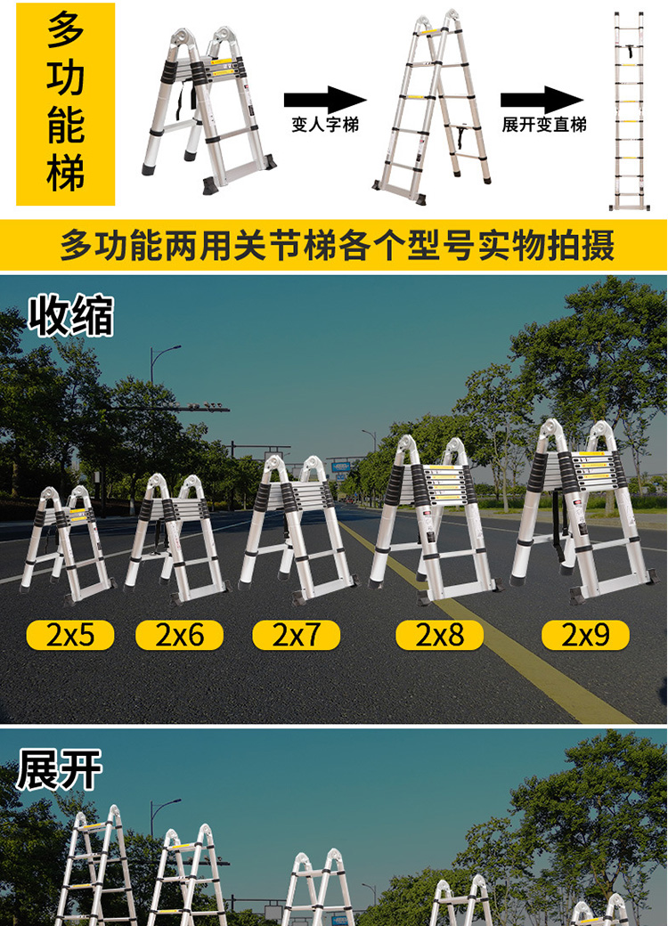 冰禹 多功能人字梯 BY-5062 8步 双面梯 2×8步关节梯=可变5米直梯 1把