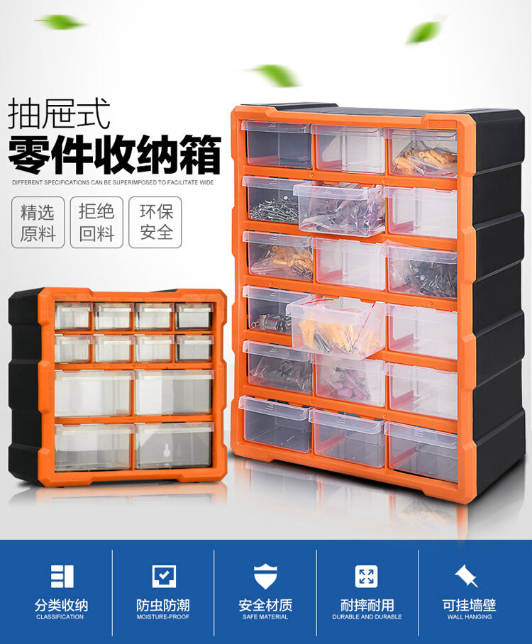 冰禹 塑料抽屉式多格零件盒 BYlj-290 60格 1个