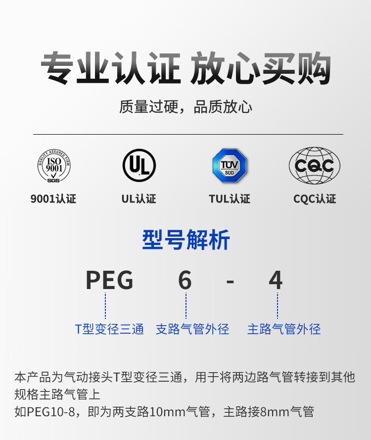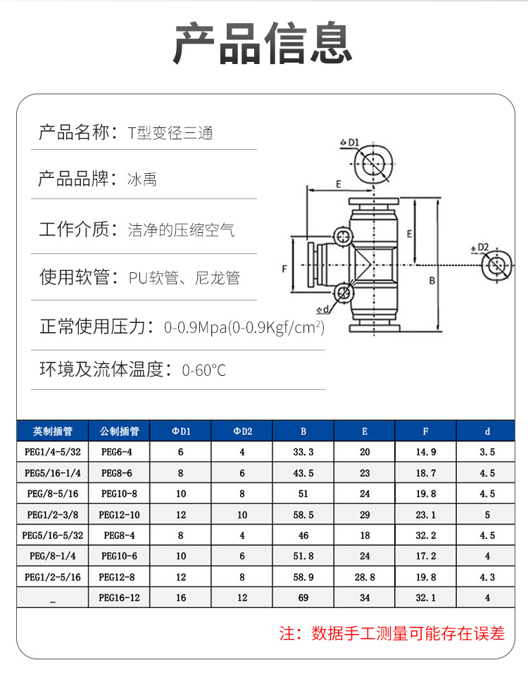 • 商品名称:冰禹 PEG塑料T型变径三通快插