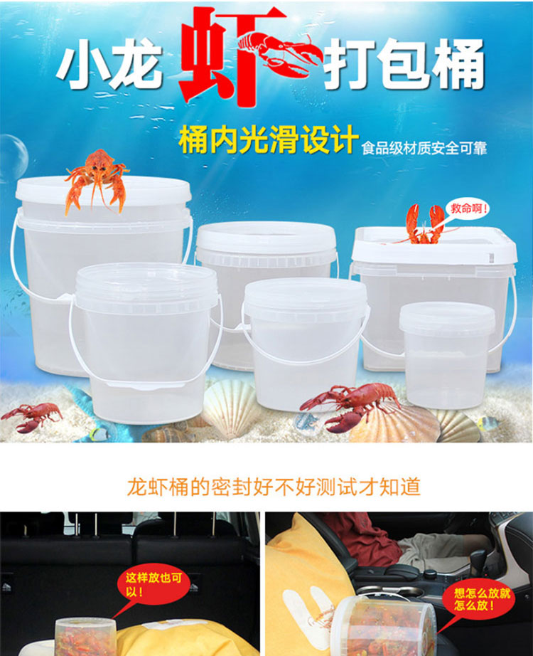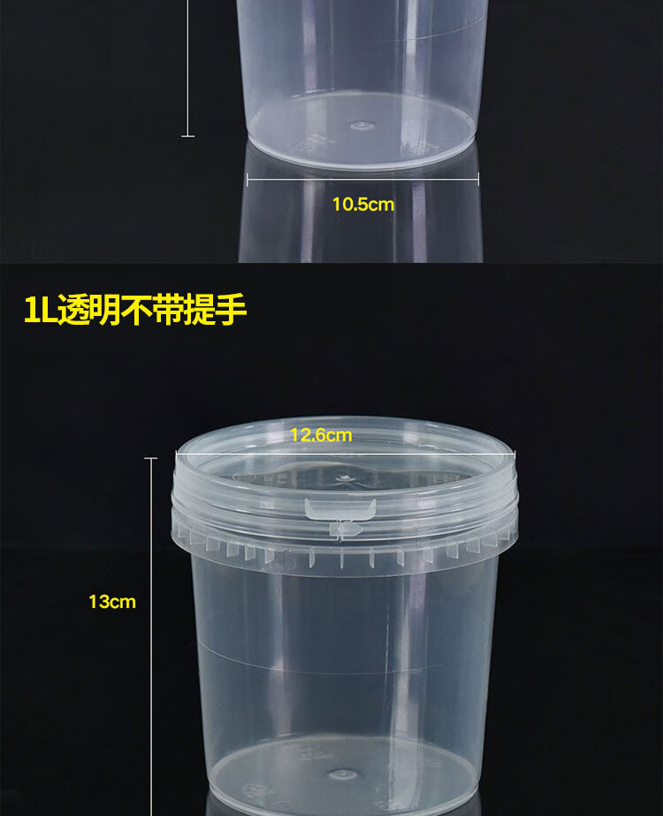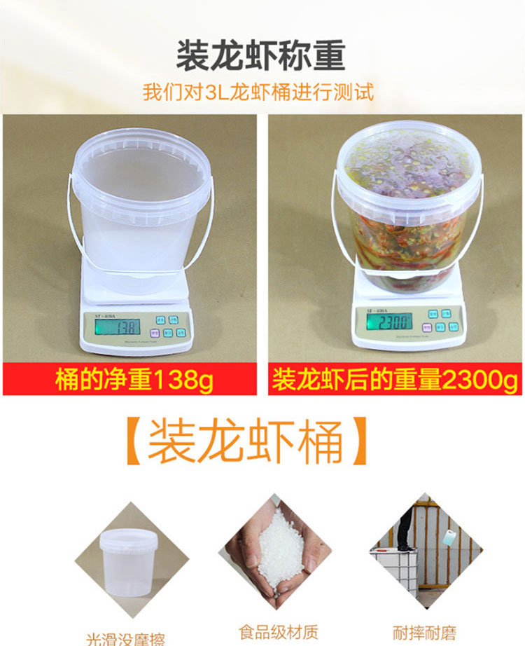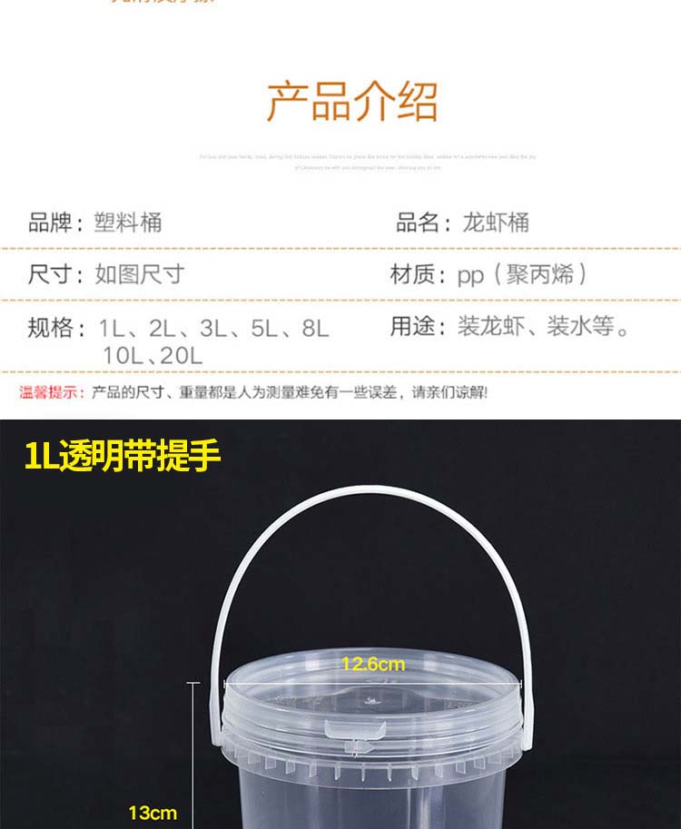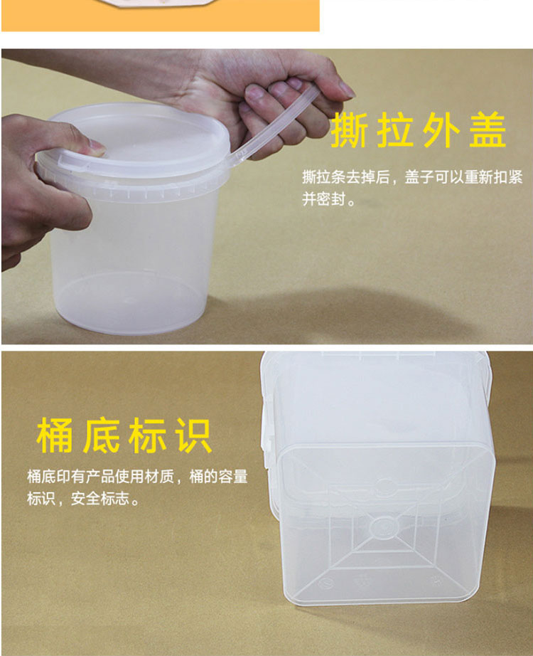 冰禹 食品级带盖小水桶 BYA-153 透明 1L带提手 1个