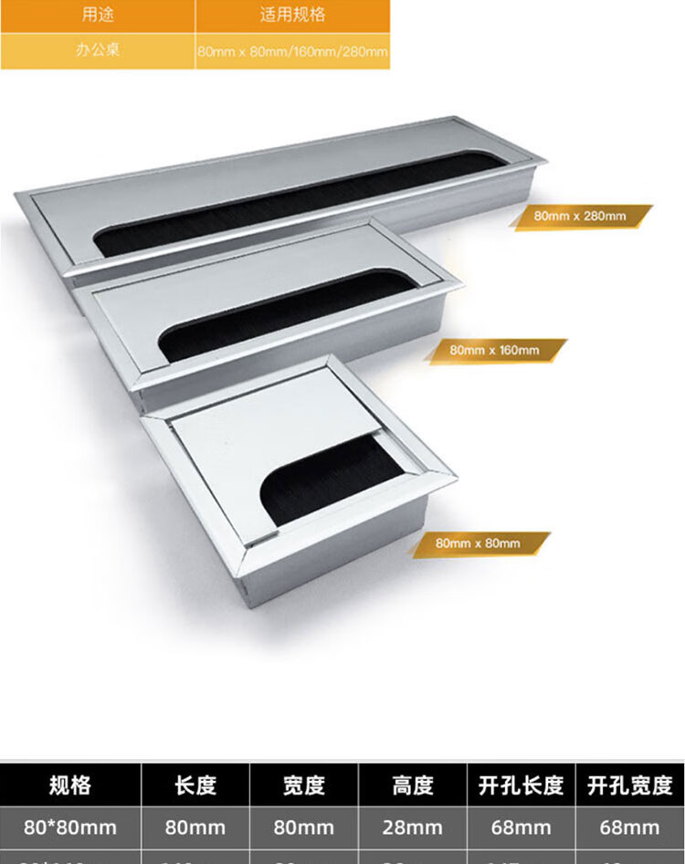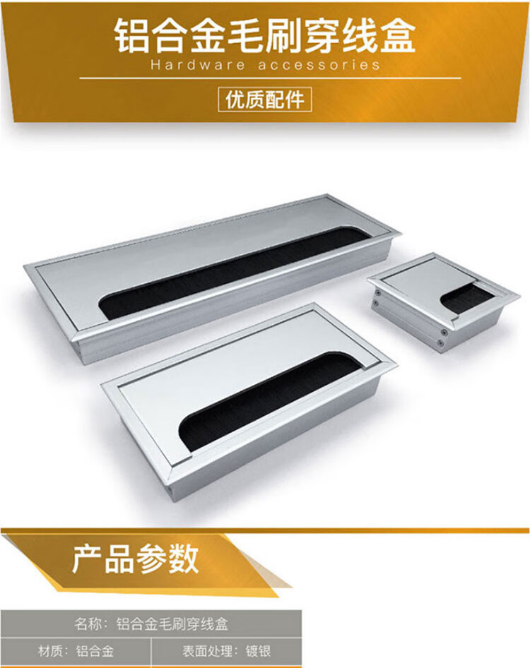 海斯迪克 铝合金带毛刷穿线盒 HKHE-019 8*28cm 1个