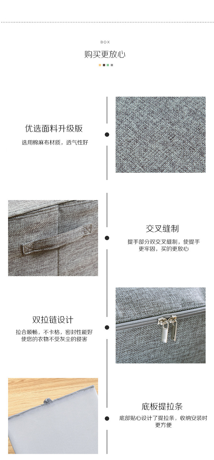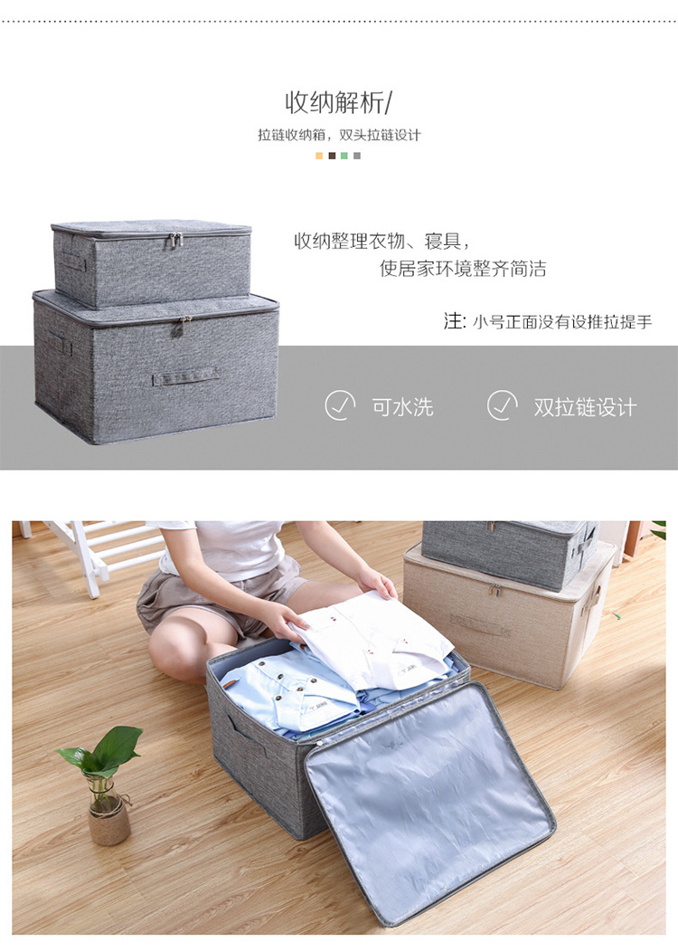 冰禹 拉链式布艺可折叠收纳箱 BYA-253 灰色 大号 1个