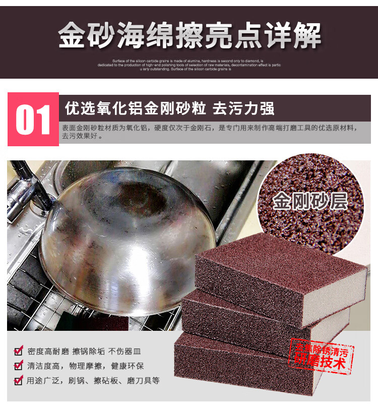 海斯迪克 海绵擦 HK-602 氧化铝金刚砂粒+海绵 10*7*2.5cm 100个 1组