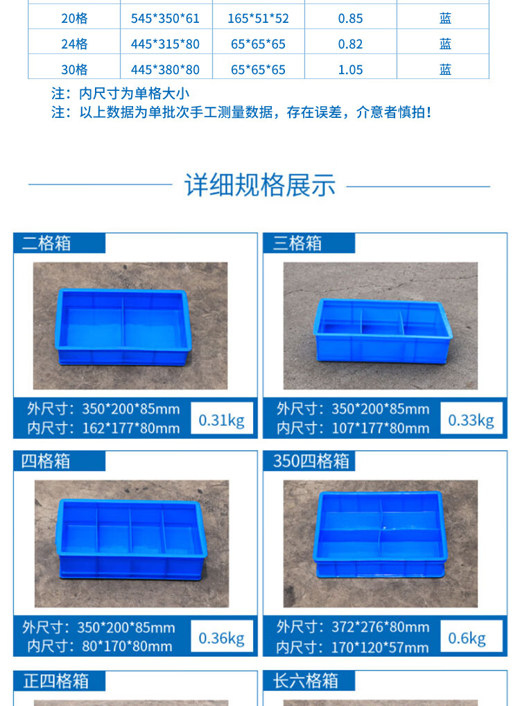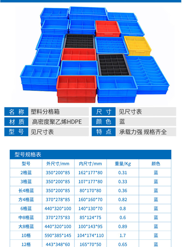 冰禹 塑料零件分格箱 BYS-103 蓝色 2格350*200*85mm 1个
