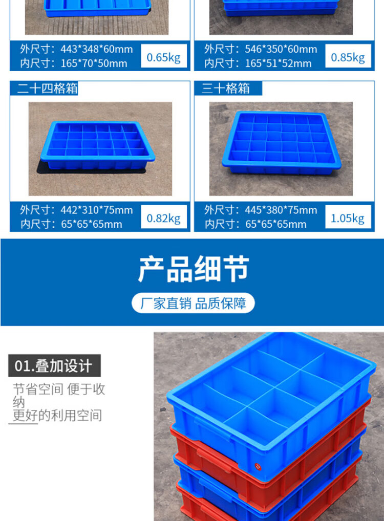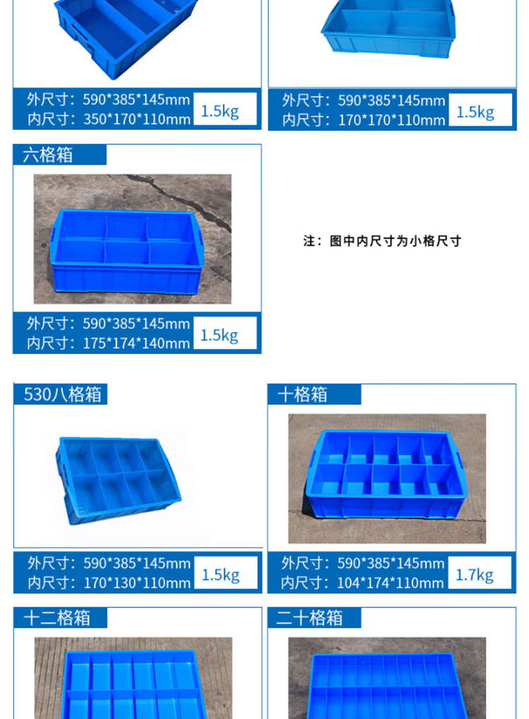 冰禹 塑料零件分格箱 BYS-103 蓝色 20格箱外545*350*61mm 1个