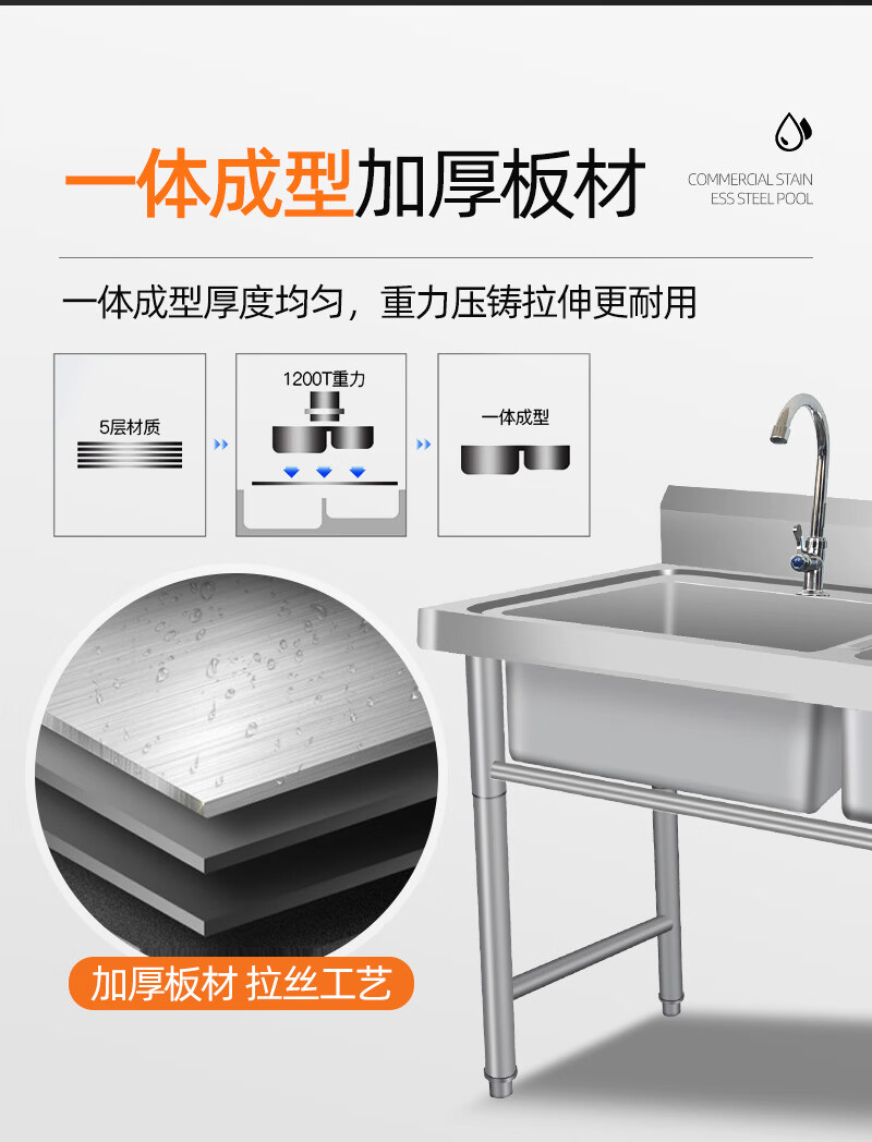冰禹 不锈钢水槽商用储水池 BYS-272 双池100*50*80cm 1个