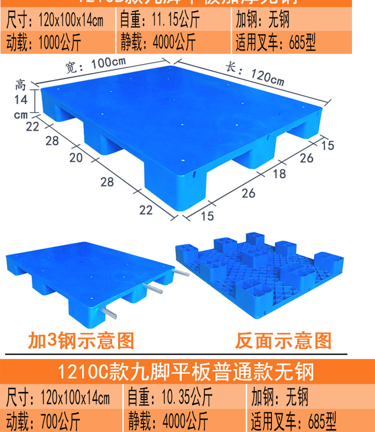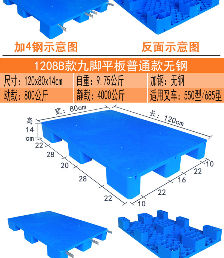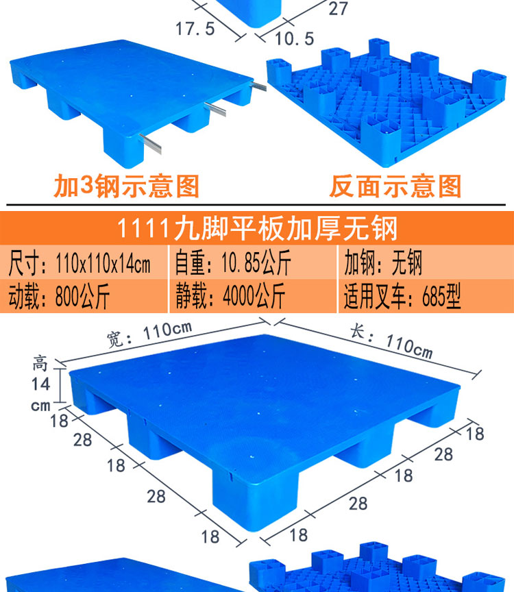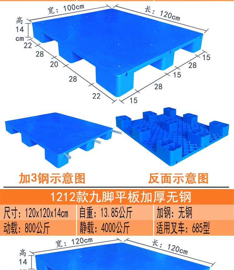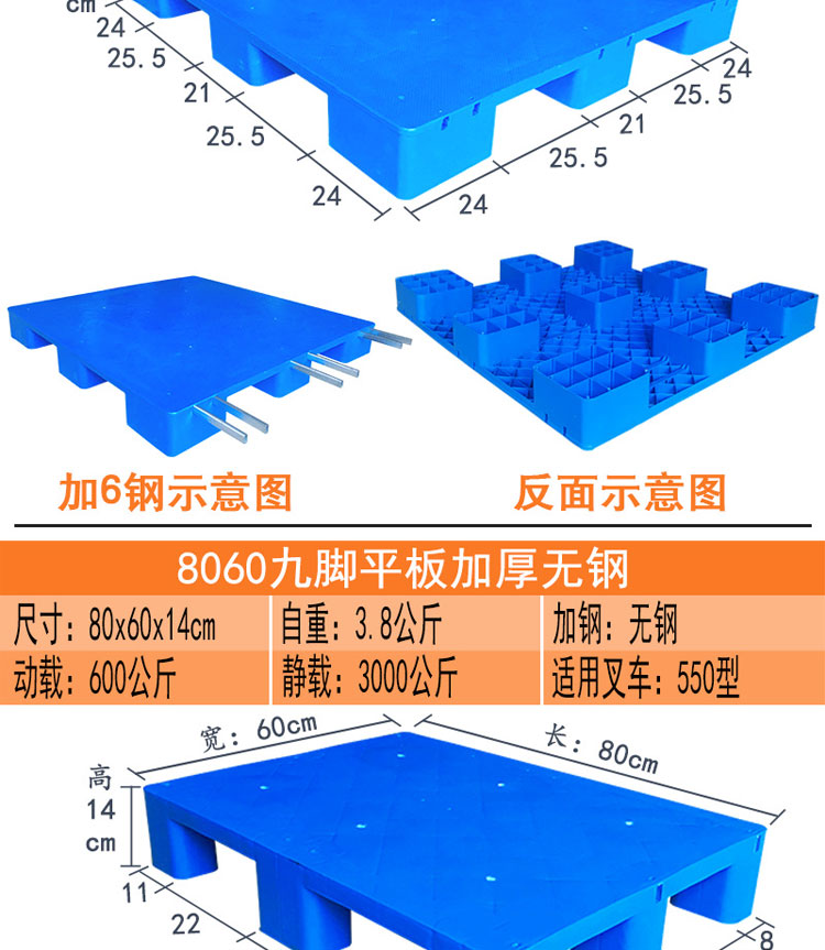 冰禹 塑料九脚叉车托盘 bf-152 静载3T 动载0.6T 80*60*14cm加3钢 1个
