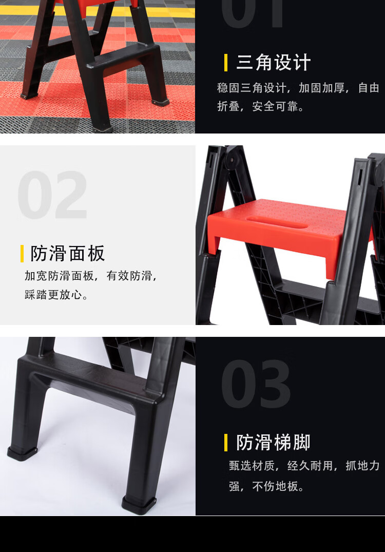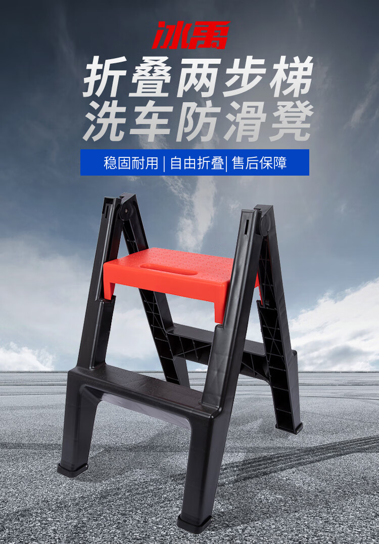 冰禹 折叠两步梯凳 BYS-234 PP+PET 红黑色(承重150kg) 1把
