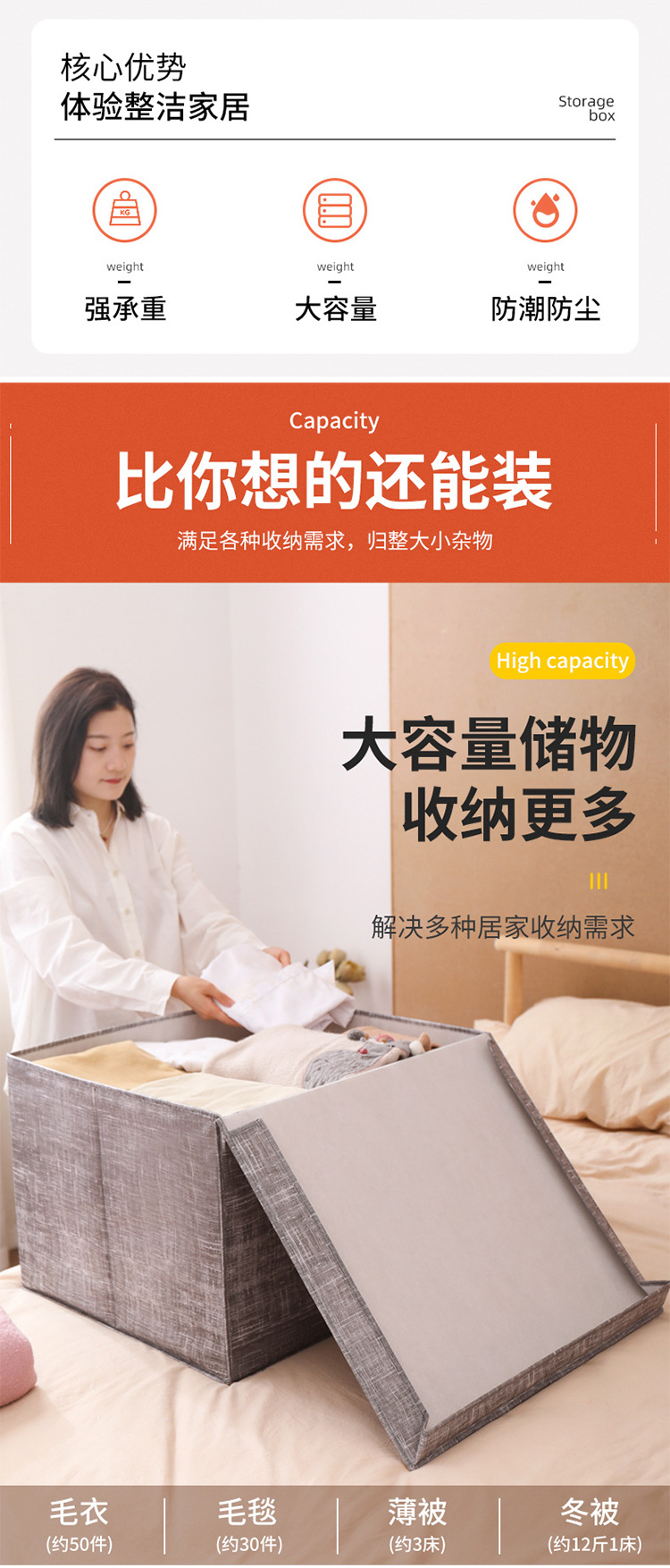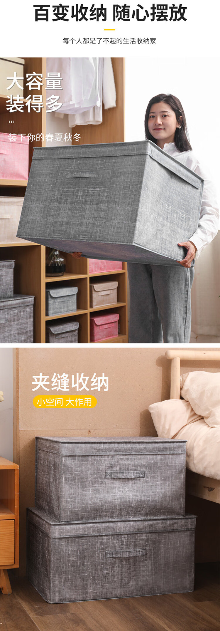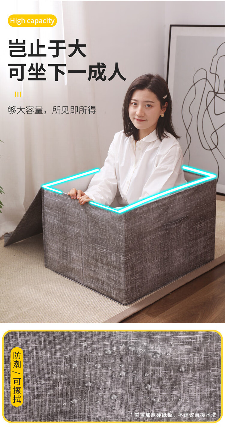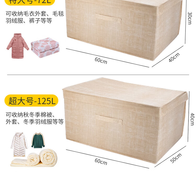 冰禹 加厚无纺布收纳箱 BYS-358 米色 特大号60*40*30cm 1个