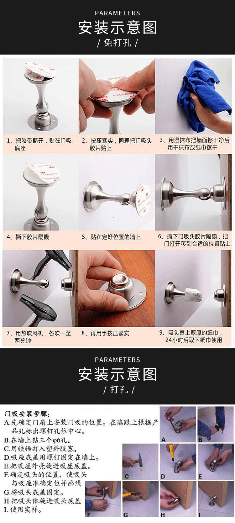 海斯迪克 门吸地吸 gnjz-1000 不锈钢 免打孔青古 1个