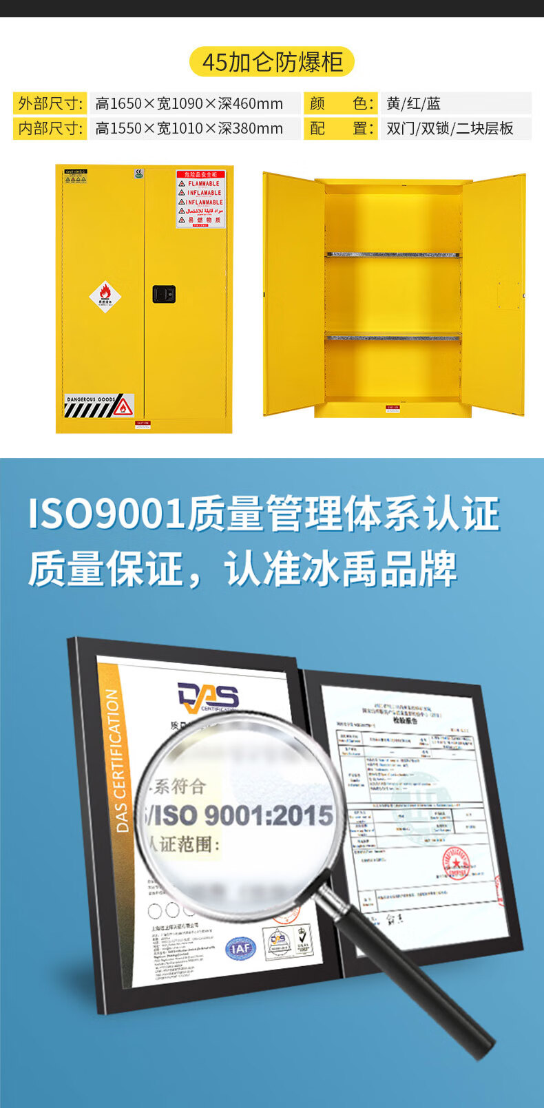 冰禹 防爆柜 bf-236 黄色 1650*590*460mm 22加仑 1个