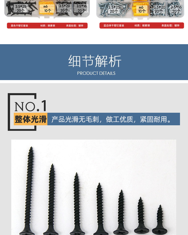 冰禹 膨胀螺丝钉套装 BYyc-59 碳钢 发黑 全牙 GB14210 黑色干壁钉15格套装 1套