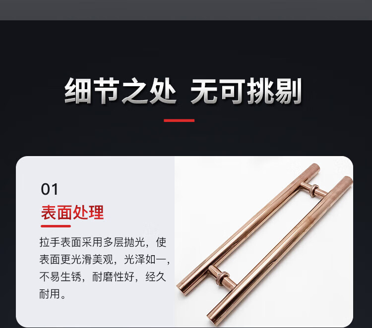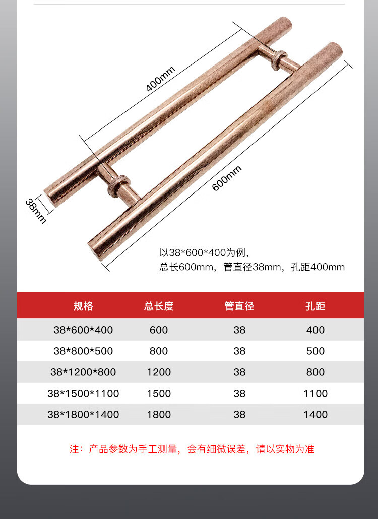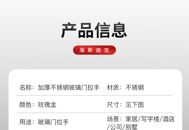 海斯迪克 玻璃门拉手 gnxy-181 不锈钢 玫瑰金配扳手38管 总长800mm 孔距500mm 1件