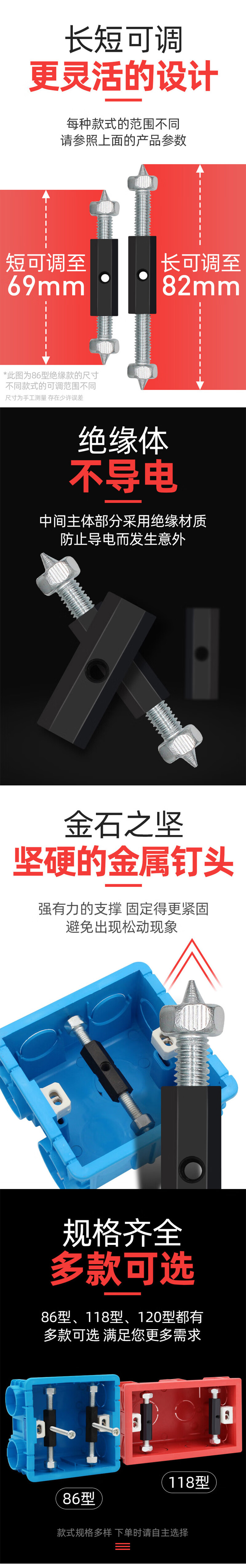 冰禹 接线盒插座修补工具(含扳手螺丝) BYZJ-137 86型绝缘撑杆 10只 1包