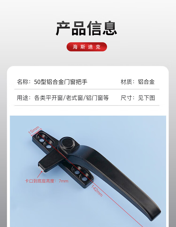 海斯迪克 窗户把手 HSDK-269 铝合金 银灰色 左执手 1个