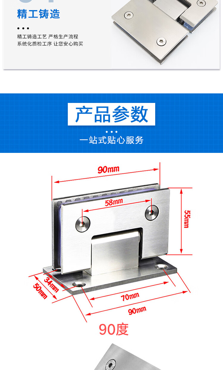 海斯迪克 304不锈钢玻璃夹 HSDK-123 4mm焊夹180度拉丝 1个