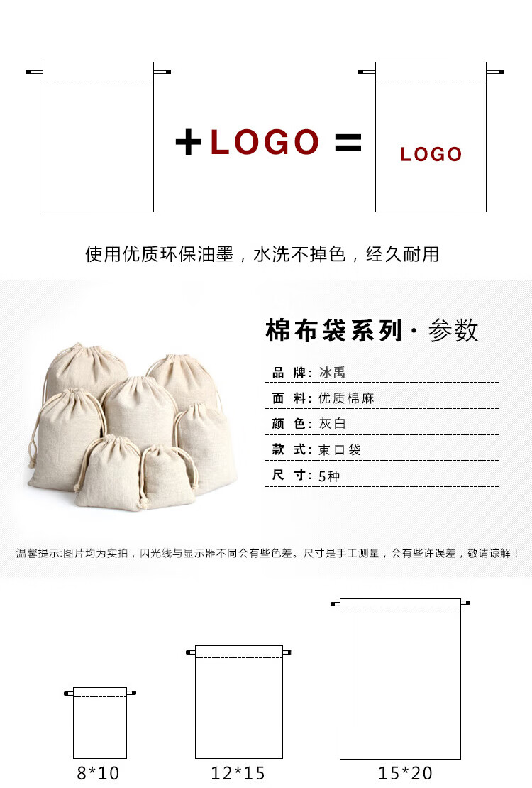 冰禹 束口棉布布袋 BYjq-205 白色 棉布15*20cm 10个 1包