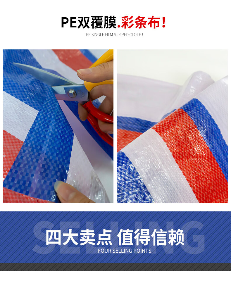 冰禹 彩条布三色布 BYaf-600 PE 加厚3*50米 红白蓝色 1块