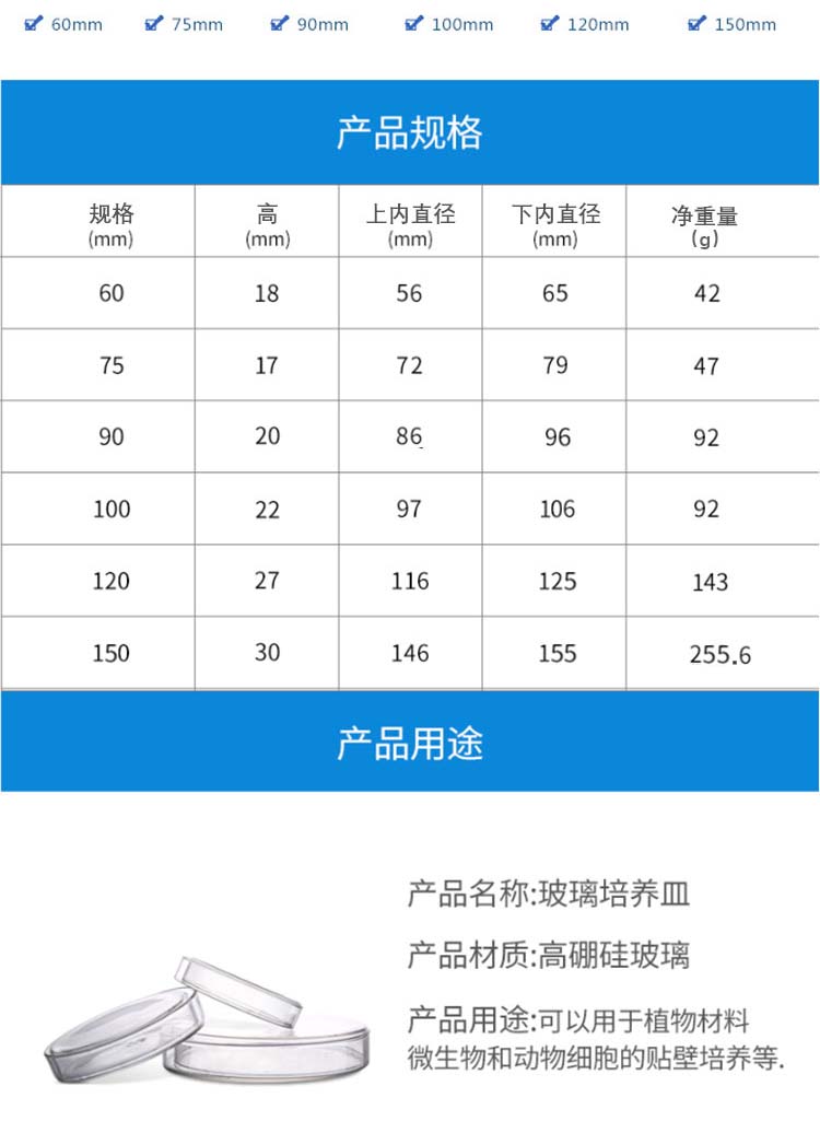 冰禹 玻璃培养皿 BY-7003 高硼硅玻璃 60mm 1个