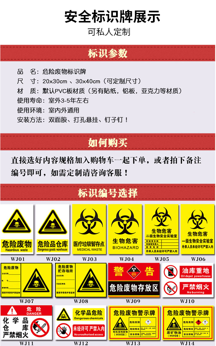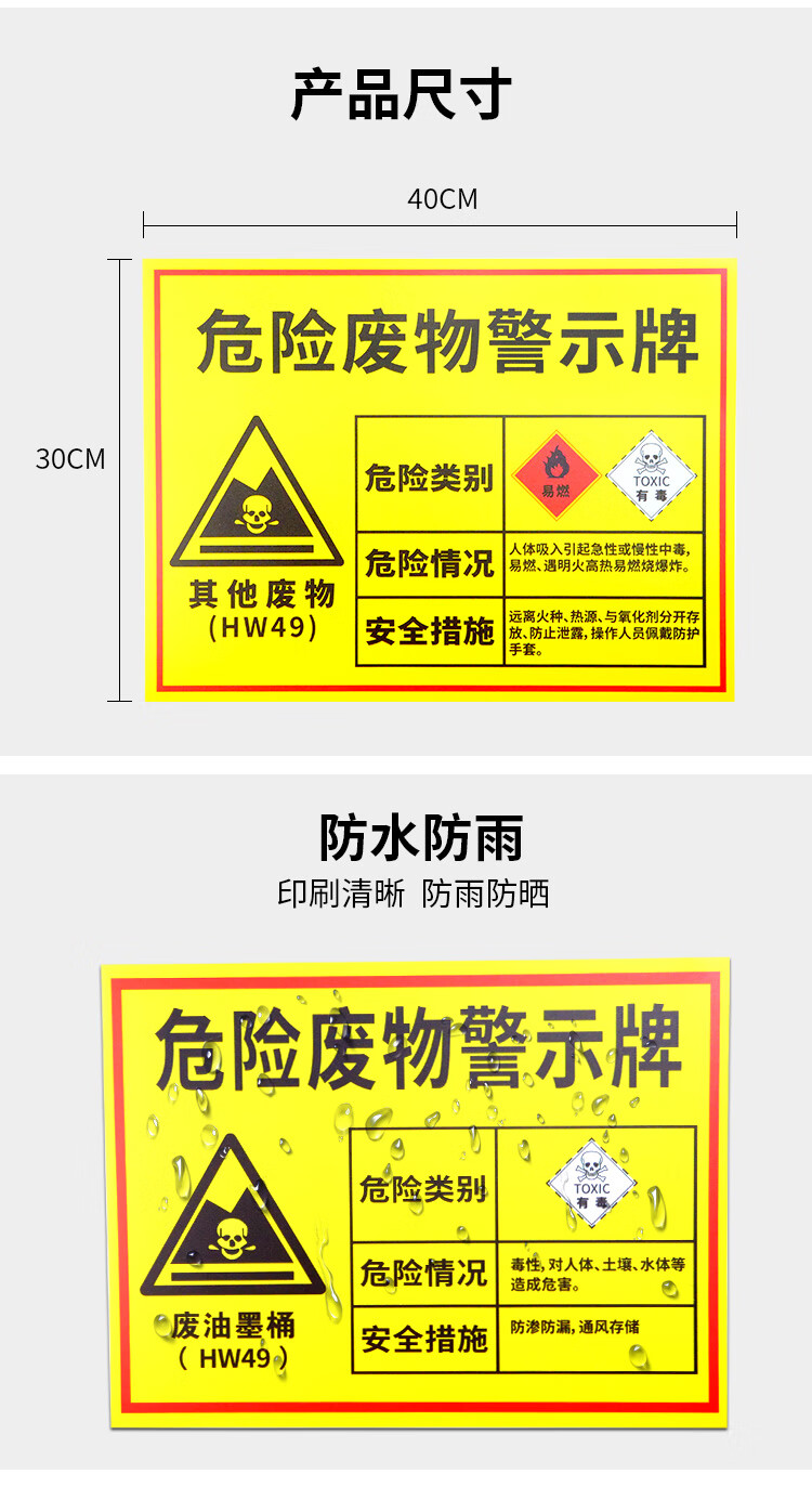 冰禹 安全标识牌 BYaf-76 PVC 30*20cm 危险废物 1个