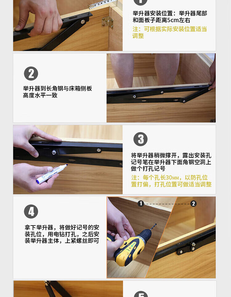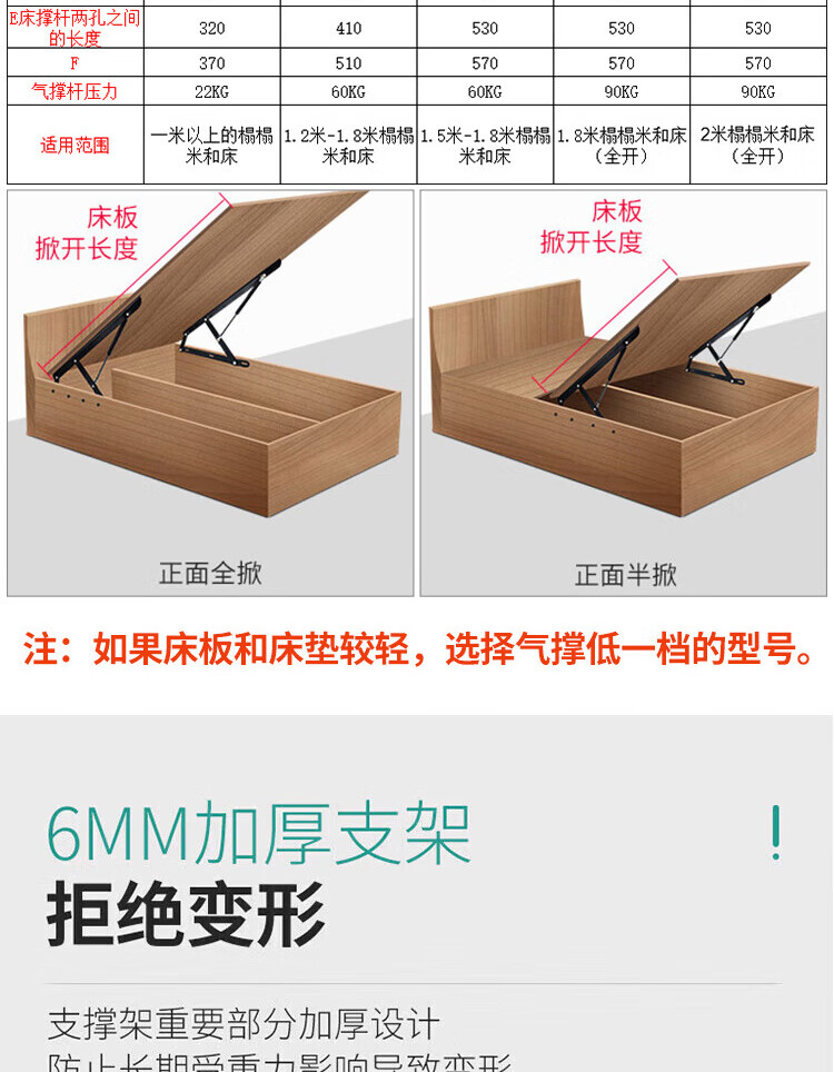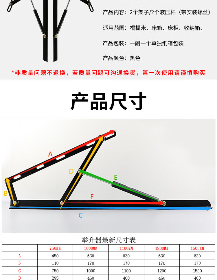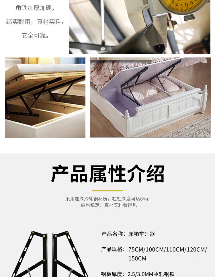 海斯迪克 床板举升器 gnxy-527 冷轧钢铁 黑色 75cm 2个 1副
