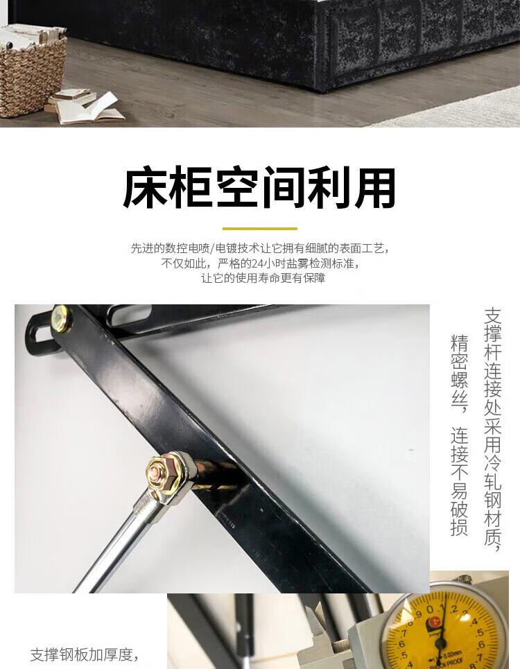 海斯迪克 床板举升器 gnxy-527 冷轧钢铁 黑色 110cm 2个 1副