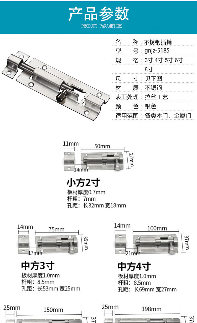 海斯迪克 插销 gny-171 不锈钢 拉丝 2寸(配螺丝) 1个