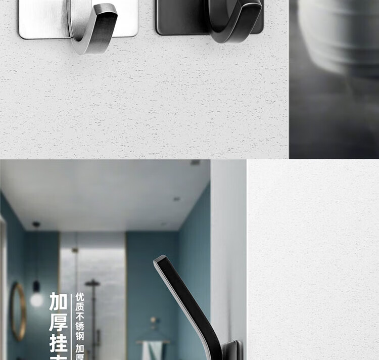 海斯迪克 现代简约挂钩 gny-190 不锈钢 黑色 2个 1包