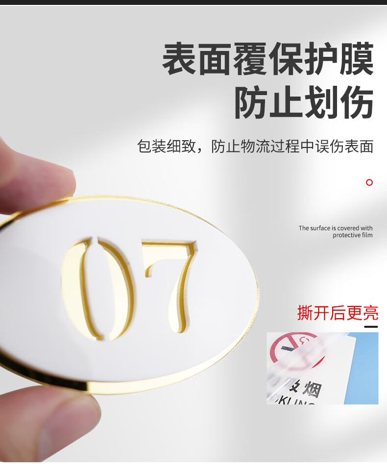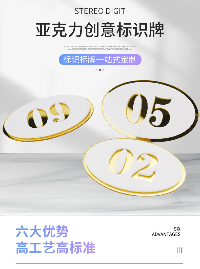 冰禹 数字号码牌 BYyn-463 亚克力 5*8cm 双层镜面金长方形5*8cm 1个