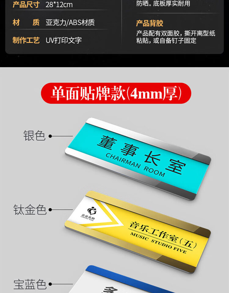 冰禹 办公室门牌 BYbp-542 亚克力/ABS 28*12cm 金色粘贴版 1个