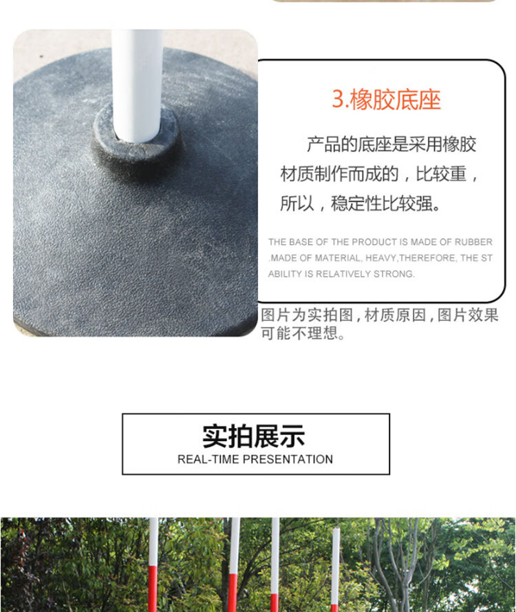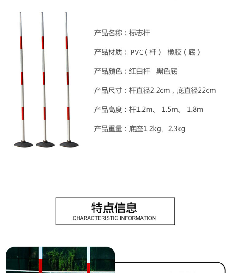 • 规格红白杆(含旗)2.3kg橡胶底座+1.2米pvc杆