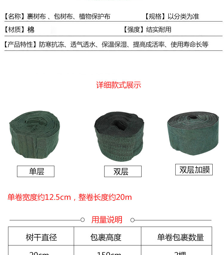 冰禹 大树保温棉绿化保温布 BYlj-179 单层加厚20米 1卷