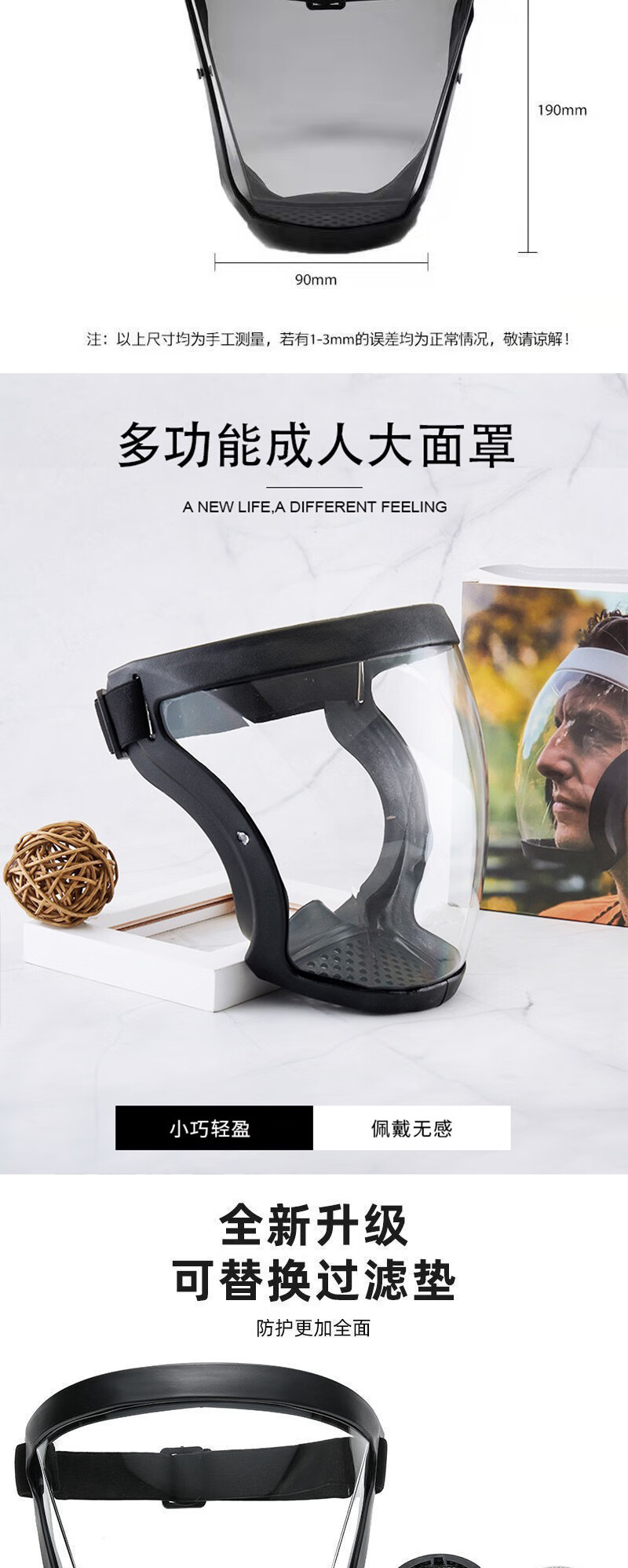 冰禹 全脸防护面罩 BYA-547 PC+橡胶 升级款黑白 1个