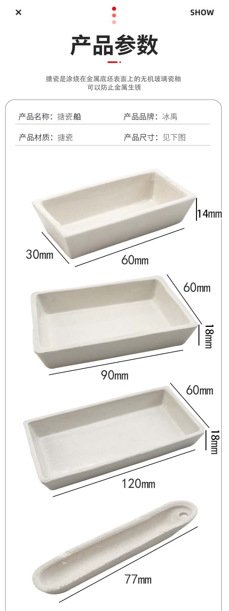 冰禹 瓷方舟陶瓷船(单拍不发) BYA-556 搪瓷 90*60*18mm 1个