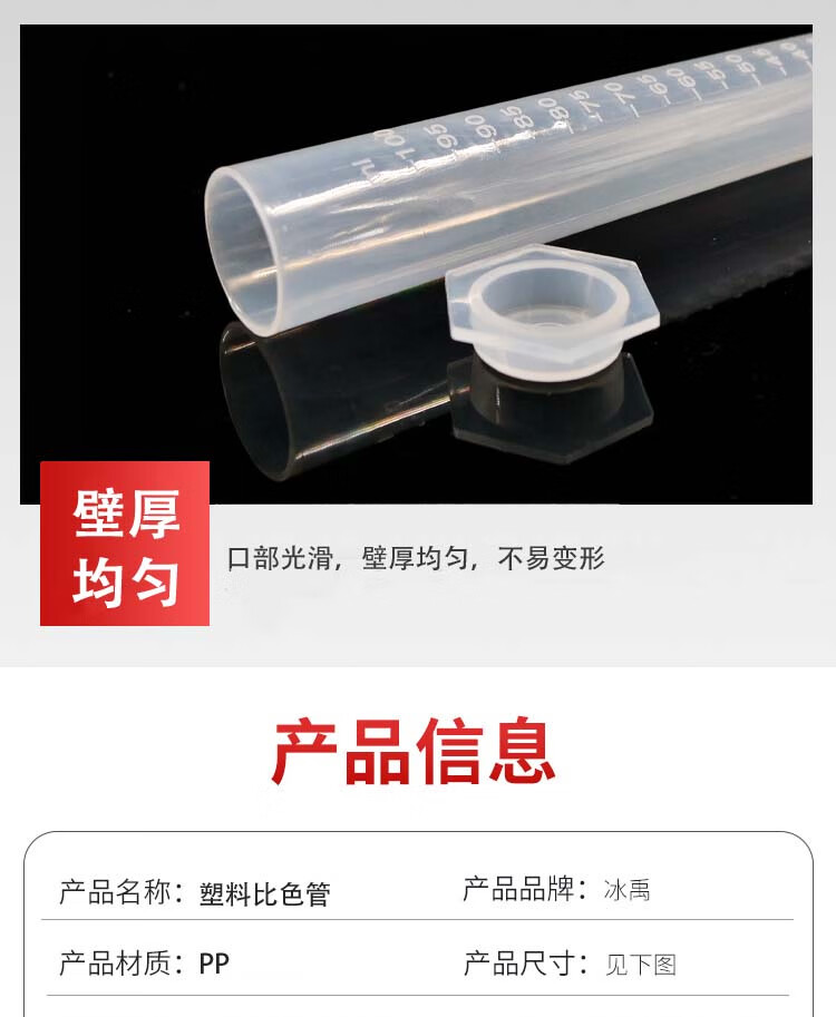 冰禹 塑料比色管 BYA-564 PP 10ml 1个