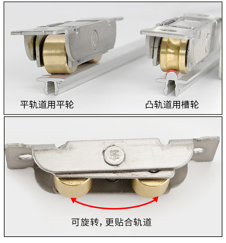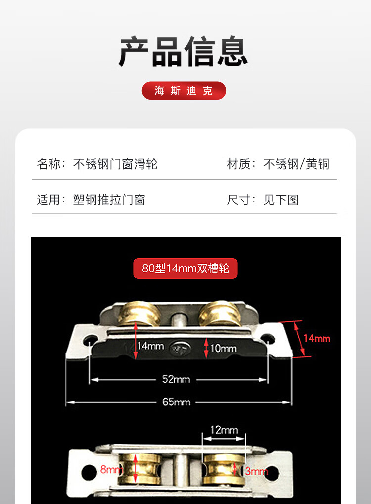 海斯迪克 门窗滑轮 gnxy-465 不锈钢+黄铜 80型14mm双平轮 8个 1包