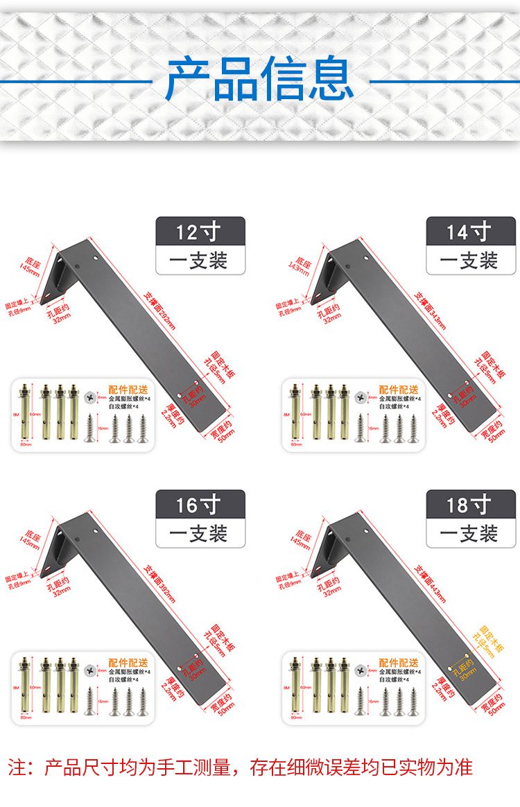 海斯迪克 三角支架 gnjz-7446 冷轧钢 黑色16寸2个 2个 1包