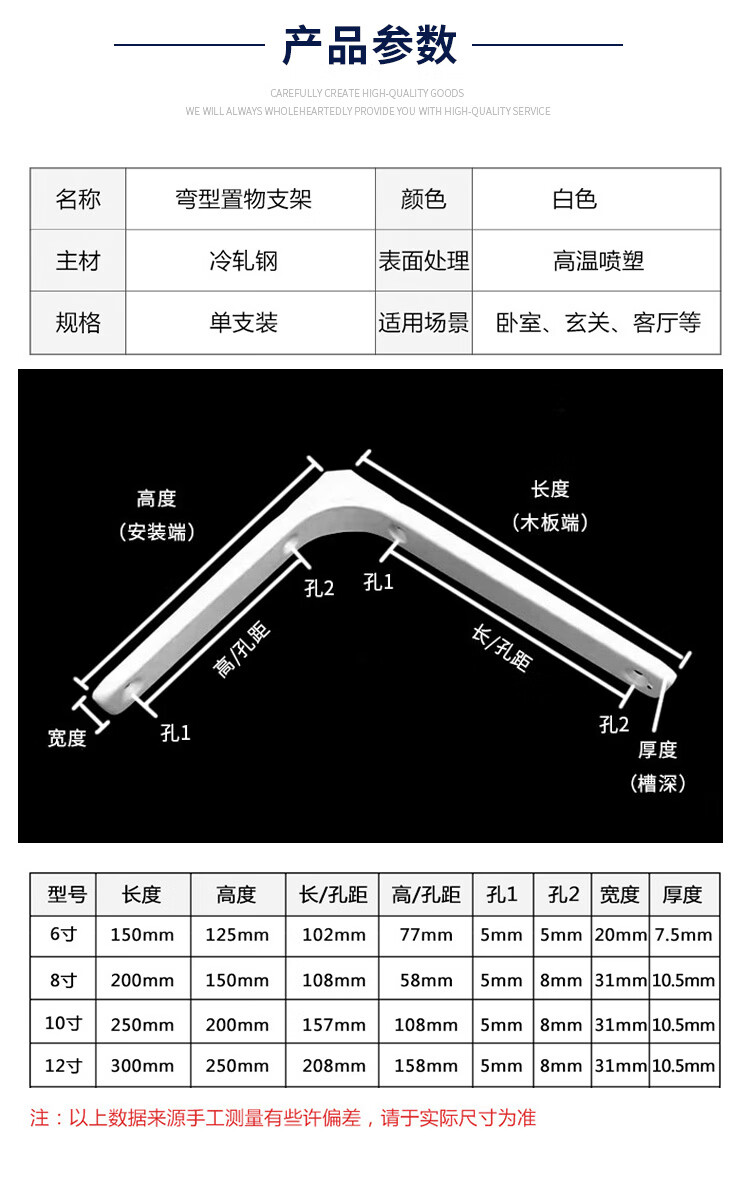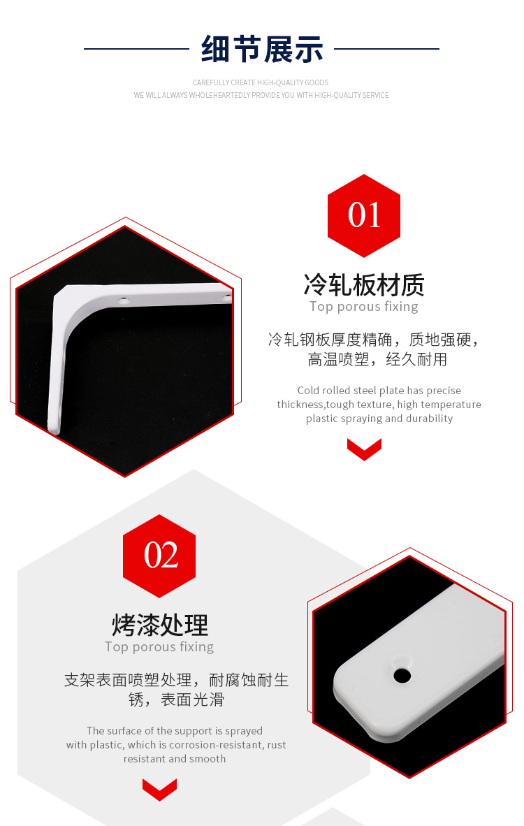 海斯迪克 三角支架 gnjz-7446 冷轧钢 白色10寸2个 2个 1包