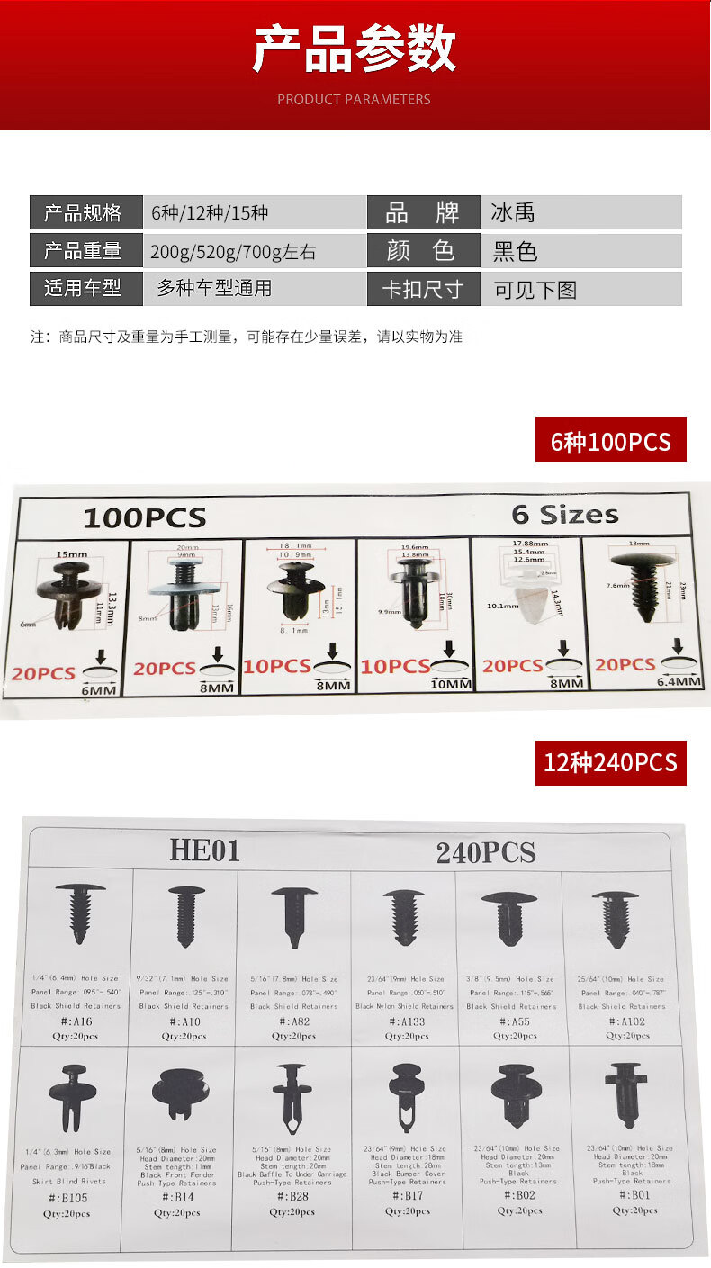 冰禹 汽车卡扣盒装 BYC-155 12种240pcs 1盒